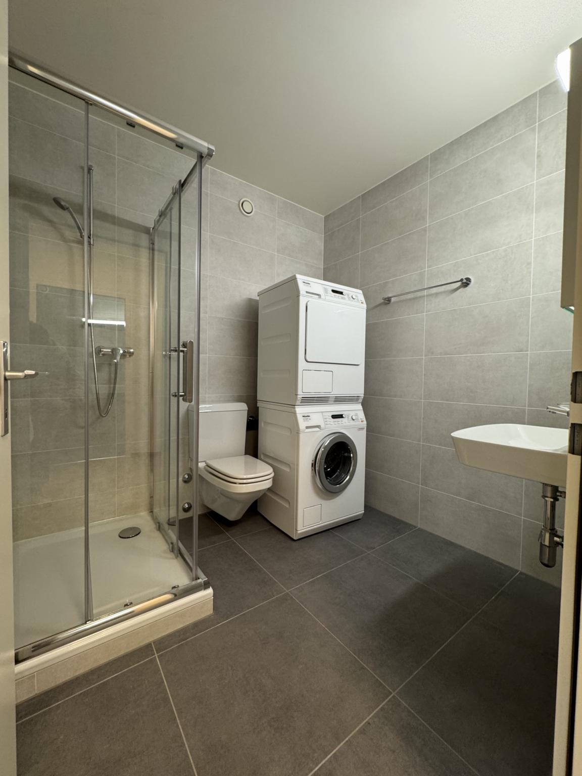 • Buanderie équipée : machine à laver et sèche-linge Miele dans une salle de bains.