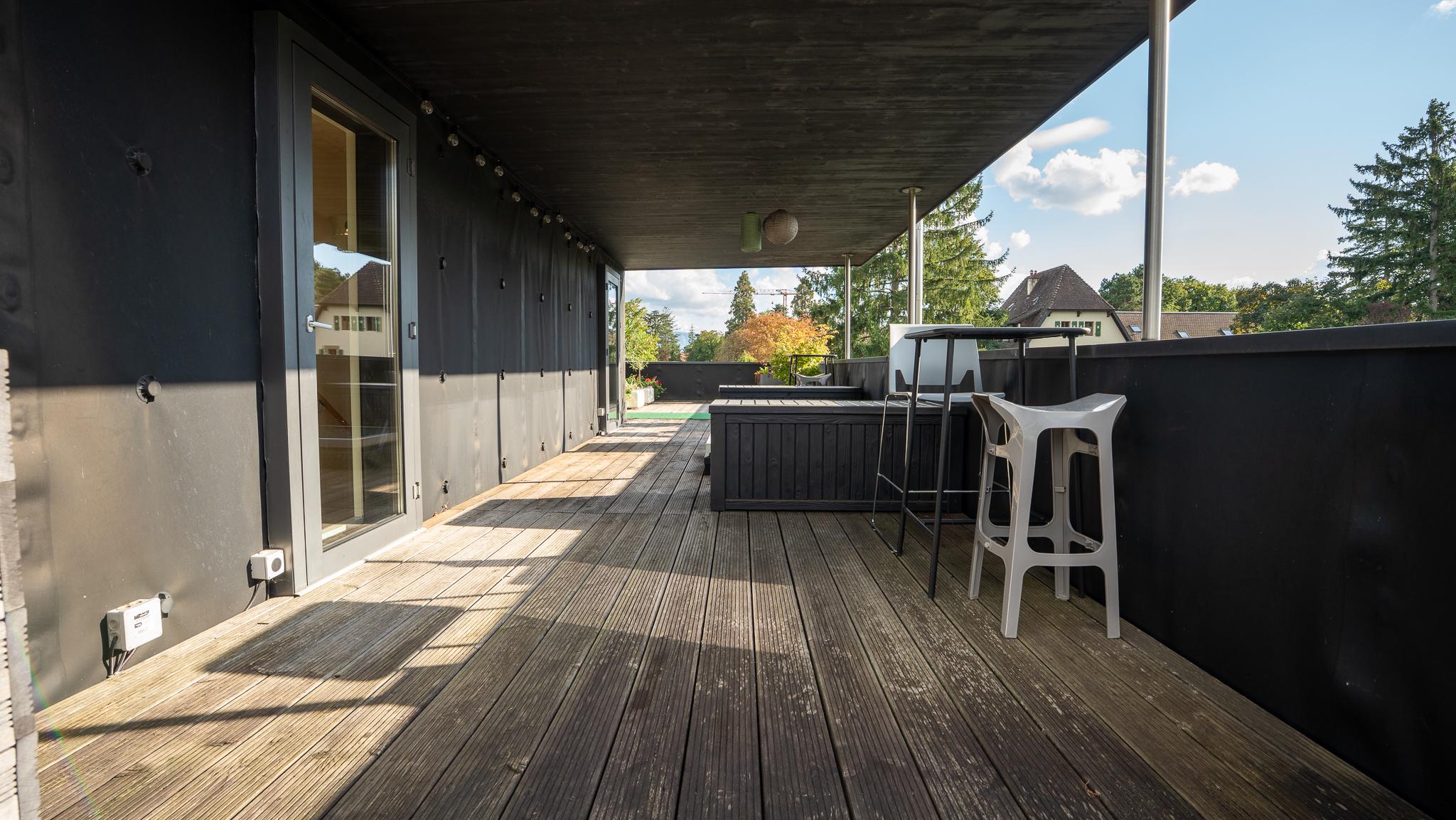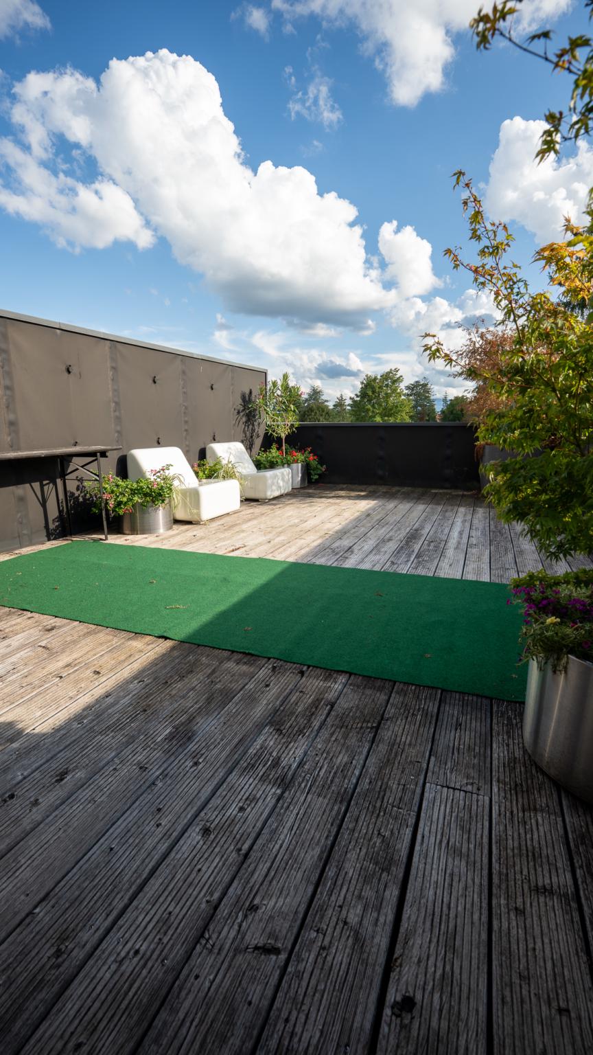 L'extérieur ne manquera pas de vous séduire, avec un grand terrain de 774 m² et une incroyable terrasse sur le toit de 90 m², parfaite pour profiter des beaux jours et de la vue dégagée.