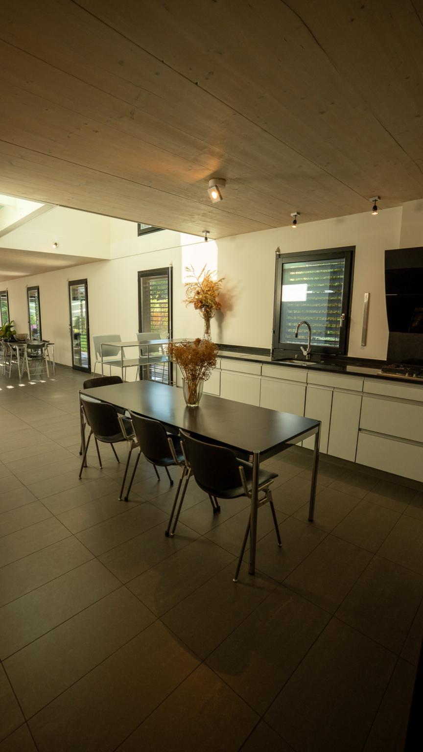 Au rez-de-chaussée, vous trouverez un vaste séjour baigné de lumière, avec sa cuisine ouverte et entièrement équipée et un bureau avec sa salle de bains.